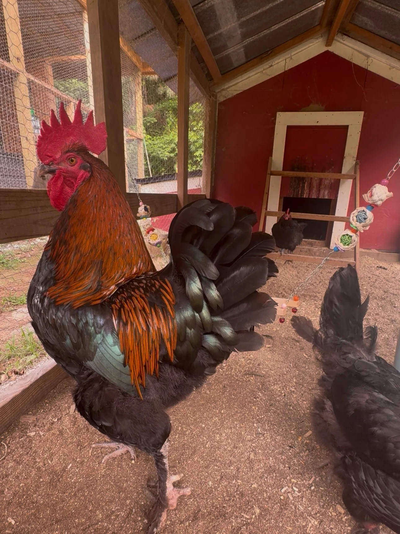 We are very particular about our roosters, only keeping the most beautiful/correct grow outs, with the most gentle dispositions. We do not keep/breed any rooster that has shown aggression to us, our youngest daughter, or their hens. Aggression in roosters typically passes to their offspring, and no one should have to deal with a nasty rooster.